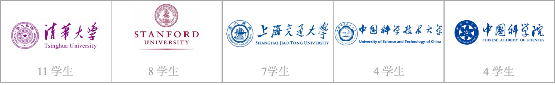 AI华人新星百强榜单共覆盖全球46所顶尖大学与机构,其中来自中国的学校与机构为21所,占比45.7%;来自国外的学校与机构为25所,占比54.3%。本次榜单中,入选学生最多的TOP5学校与机构分别是清华大学,斯坦福大学,上海交通大学,中国科学技术大学以及中科院,分别有11、8、7、4、4名学子进入榜单。