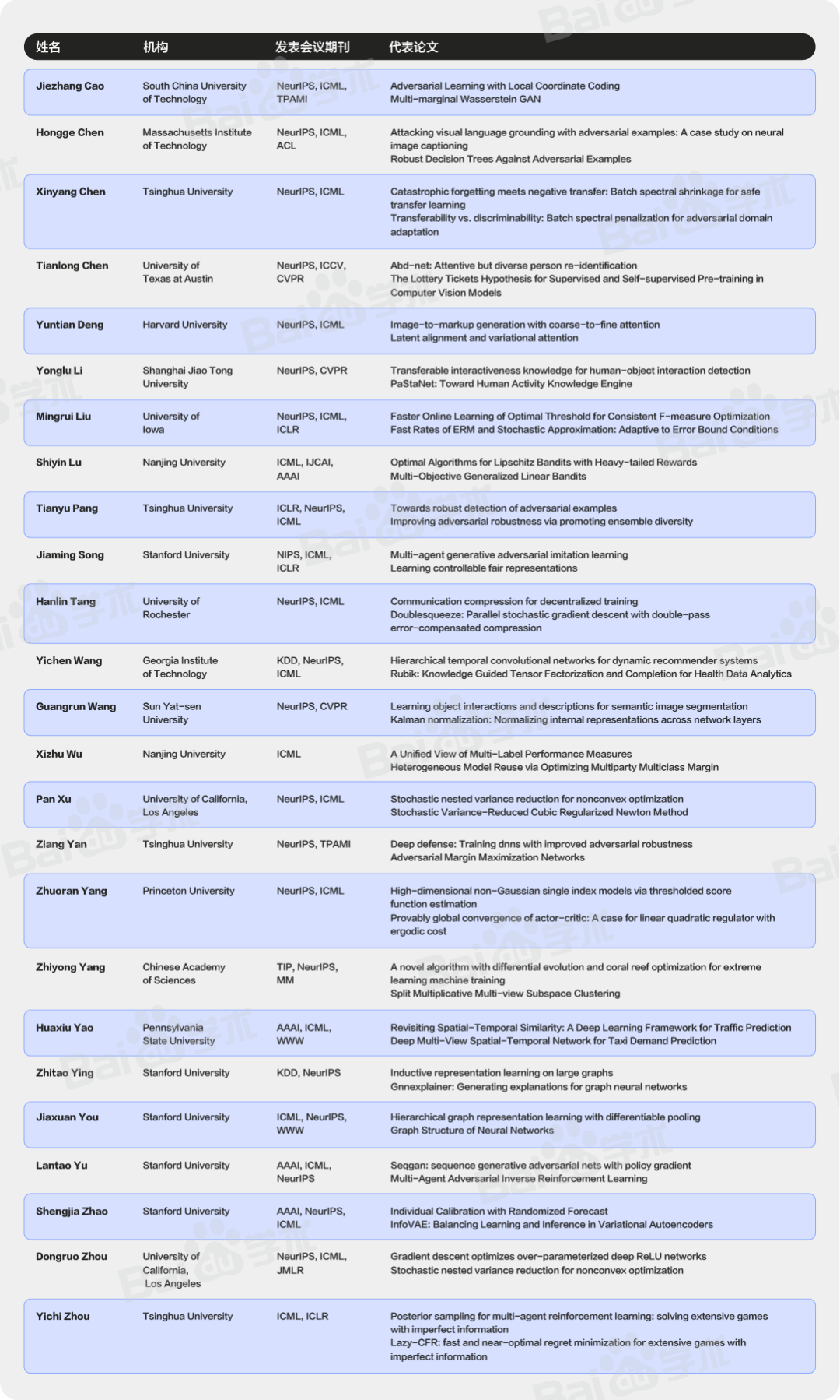 AI华人新星榜单由百度人才智库(TIC)、百度学术、天津大学中国社会计算研究中心、中国科大商业智能中心联合发布,旨在鼓励人工智能领域的青年学生做出更多有意义的成果,培养兼具“厚度”与“高度”的中国青年技术领袖。