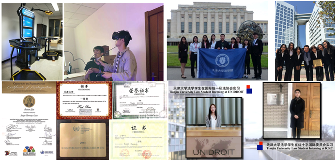虚拟仿真硬件设备,使得师生开发的软件能与硬件进行配合使用,达到更好的教学沉浸式体验。学生在完成在线课程和虚拟仿真实验后积极参加国际法模拟法庭比赛,学生曾获得两次国际刑事法院模拟法庭比赛全国一等奖和一次曼德拉国际人权法模拟法庭全国一等奖。学生还可以通过学院推荐,获得全额资助前往国际组织进行实习和海外留学深造。